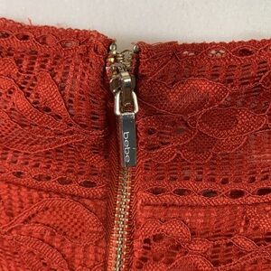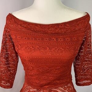 Bebe Orange Lace Floral Design Peplum Quarter Sleeve Top