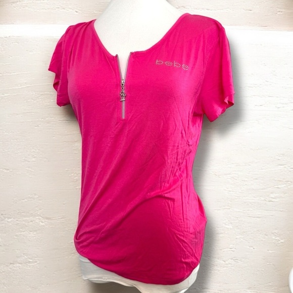Bebe Pink Zippered Women's Top T-Shirt Y2K rhinestone M