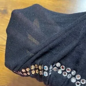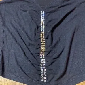 V neck and rhinestone stripe front.