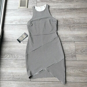Bebe Short Asymmetrical Striped Stretch Mini Dress