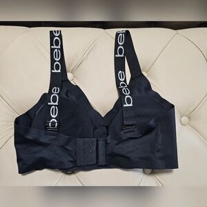 Bebe Sport Bra Black Removable pads Logo Straps No Shows Lines Bralette Size L