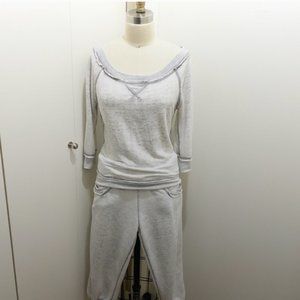 Bebe Sport Raw Edge 3/4 Sleeve Light Grey Sweatshirt S - TOP ONLY