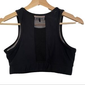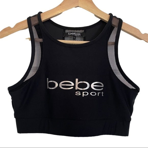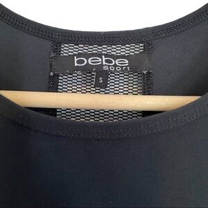Bebe Sport black and silver racerback sports bra. Unpadded with mesh accents. Super cute! See photo for approximate measurements