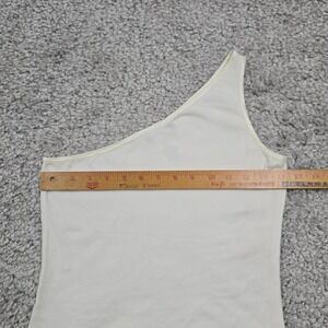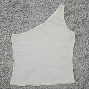 Bebe Top Women Large Off White One Shoulder Flag Rhinestone Y2K Stretch