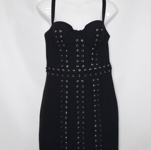 Bebe X Naven Black Bustier Lace up Bodycon Dress Size 8