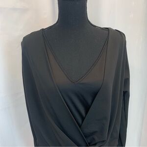 Bebe black V-neck draped cutout long sleeve bodysuit Sz L