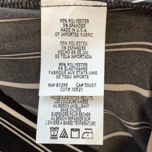 This black and white striped jumpsuit (pants) is very stretchy and comfortable. Purchased a couple of years ago and worn to the office a couple of times (dry cleaned a couple of times).