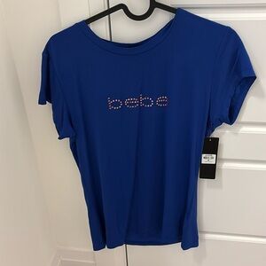 Bebe dazzling blue logo tee with Swarovski crystal Sz M