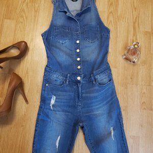 Vintage Bebe denim jumpsuit. Obsessed!!!! Features a functional button up front and zip fly. Gorgeous sleeveless style with a slightly stretchy denim make these fit like a second skin. Cool girl vibes for days. Channel your inner Kate Moss in this sexy one piece. Size 27.