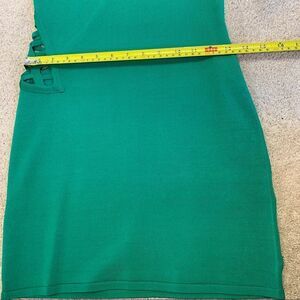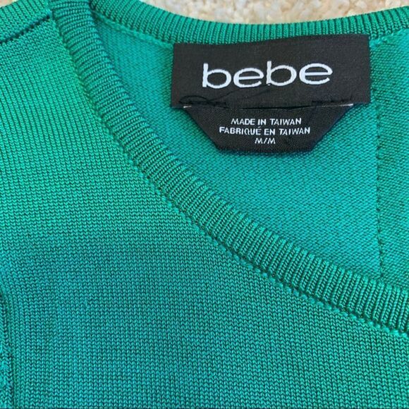 Bebe green caged cutout stretch bandage dress. Zipper on the side. Rayon 14% spandex, has stretch. Stretch knit bandage material