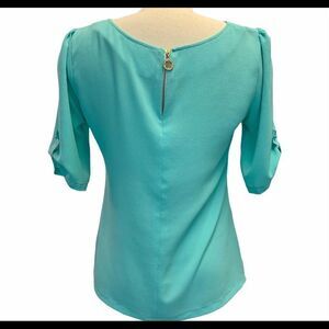 Bebe mint green short sleeve blouse size medium. Excellent condition. Size tag removed but was bought as a size medium. Refer to photo measurements for confirmation of size