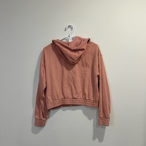 Vintage Y2K pink-salmon Bebe cropped hoodie with and teddy logo and front pocket. Signs of wear on front pocket.
