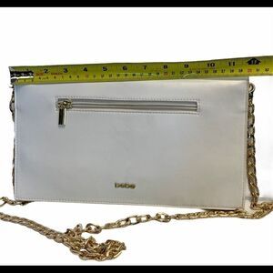 Bebe white Jewel embellished purse. Excellent condition. Used twice. The gold chain detaches from the purse.