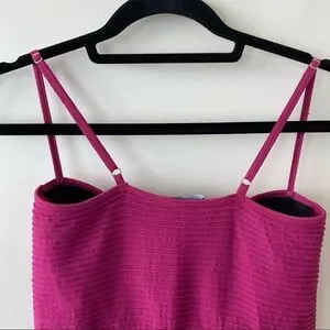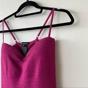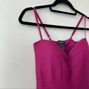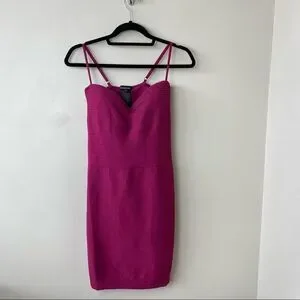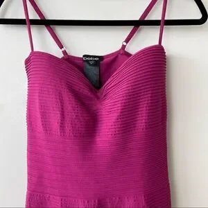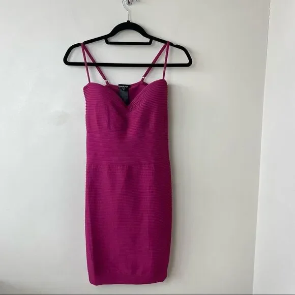 Bebe-Ribbed Deep Raspberry Party Mini Bodycon Dress (Medium/Large)