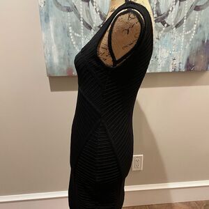 Thick and amazing quality fabric with stretch so hard to take exact measurements. It’s so flattering the pictures don’t do it Justice