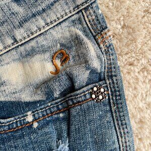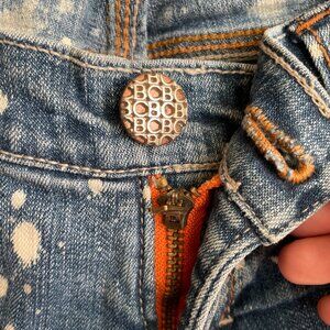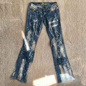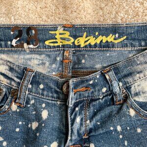 Bebina Jeans Womens 28x34 Acid Wash Splattered Distressed Low Rise Flare Festive