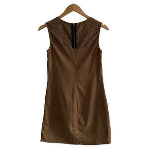 Bebop Women's Brown Faux Suede Cut Out Stretch Sleeveless A Line Mini Dress US S