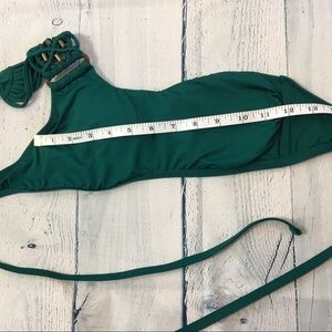 Becca by Rebecca Virtue one shoulder green bikini top string tie closure