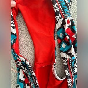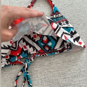 Becca by Rebecca Virtue Women's Aztec Flounce Strappy Cross Back Top, Multi