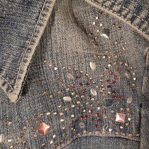 Bedazzled Parasuco Denim Jacket. Good condition - zipper can be a bit sticky and a couple of small embellishments missing (compare photos 4 and 5, they are missing from photo 5) but generally not noticable.