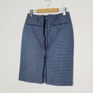 Bedo Women's Blue White Cotton Front Pockets Zip-Up Business Pencil Skirt Size 3