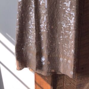 Beautiful loved sequin tan dress. Some sequins is missing. Overall pretty good condition. Stretch.