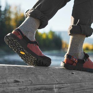 “An actual all-terrain clog? Yeah, we did that. With a durable synthetic upper, Vibram® Megagrip outsole, and our ultra-secure strap system, our Mountain Clog is as comfy in the beer garden as it is capable of an 800-mile AZT thru-hike (yeah, we did that too). And now your toes have extra coverage when the temps dip — just pop on a pair of thick socks and you'll be straight chillin’ in chilly weather.”