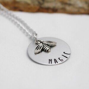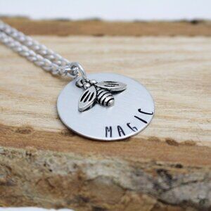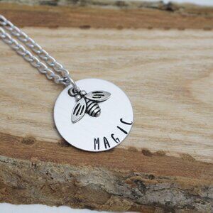 Bee Magic - Hand Stamped Pendant w/ 18" Chain - Handmade & Hypoallergenic
