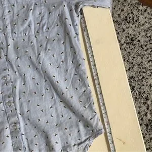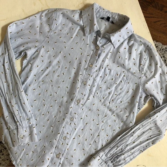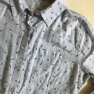 Adorable honey bee pattern button up shirt. This shirt is cotton and super soft. Fitted with a pocket on the front.