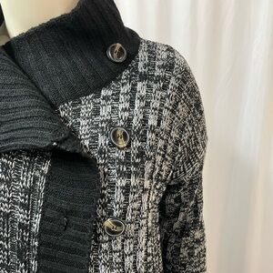 Beechers Brook Knit Cardigan, Button Up, Black and Grey, Size Medium