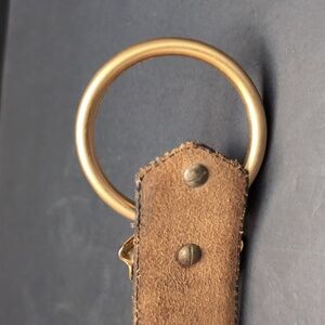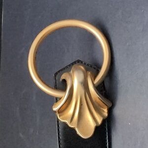 Beechers Brooke women's black leather belt with gold toned metal buckle.