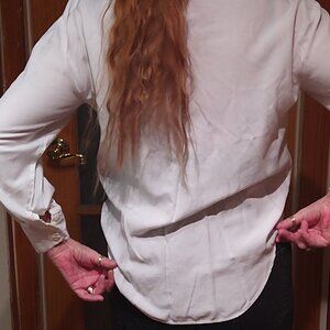 Beechers brook white ruffle neck and cuffs should pads can be removed no tag but i would say small medium