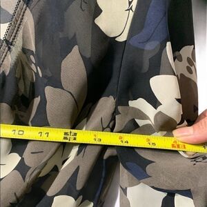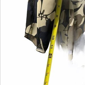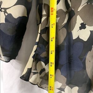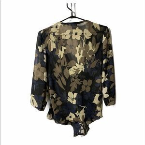 Beechers Brook floral sheer v neck flare midi sleeved blouse in a gently used condition. The colours are off white, beige, navy and black absolutely gorgeous.