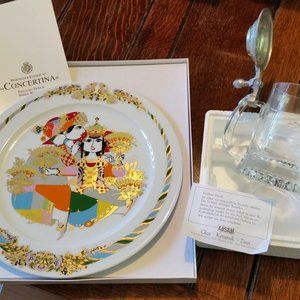 Rosenthal Teller CONCERTINA Bjorn Wiinblad Warsteiner Edition 95 AND one of a kind Warsteiner glass stein with and silver plated lid. Real collectible items. Sold as a set.