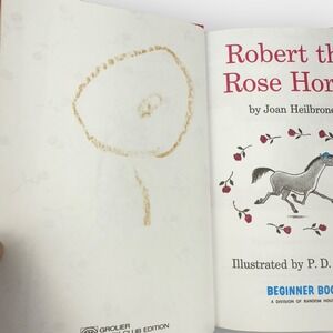 Vintage lot of 9 hardcover Beginner Books by Random House/Grolier, including: It's Not Easy Being a Bunny, Because a Little Bug Went Ka-Choo!, Robert the Rose Horse, Babar Loses His Crown, The Whales Go By, The Hair Book, Wings on Things, I'll Teach My Dog 100 Words, and Summer. Illustrated with bright vintage artwork. Binding intact across all. Flaws include cover wear, corner dings, taped spine repair, owner writing in a few volumes, stains/marks on some pages, and occasional light rippling as shown in photos