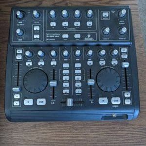 Behringer B-Control Deejay BCD3000. Great beginner setup for mixing and mashing two seperate tracks together. Link to your favourite producing or dj software for use.