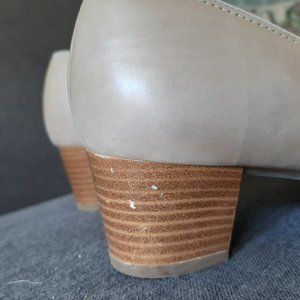 Ara pumps made of smooth beige leather, and with rubber treads. A thin elastic topline ensures elegant comfort. Heel is roughly 1.5 inches tall. There is slight scuffing on the right heel, as well as near the toe, neither of which are noticeable while wearing the shoes. UK size 7.5 G, which is equivalent to a US 10 normal width (according to the Ara Women's Size Guide. Ships from a smoke-free home.