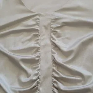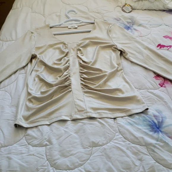 Size M Laura FULL LENGTH SLEEVES Straight Strip down the middle Gathering on both sides of Blouse V NECK Flat on back side