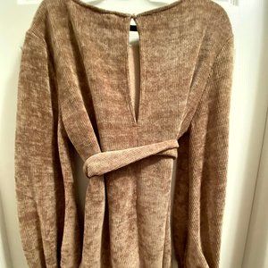 Beige Chenille Long Sleeve Dress with Belted Tie Waist from Red Dress Boutique