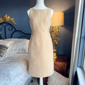 Beige Cotton Linen Blend BCBG Sleeveless Shift Dress