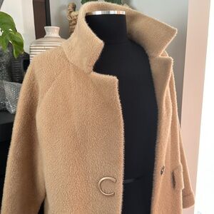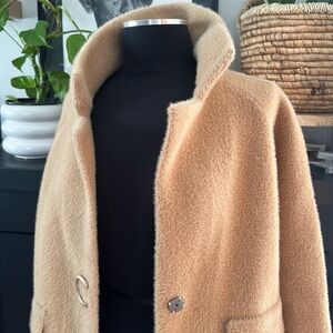 Beige Cozy Coat Jacket fuzzy-like material - Size L