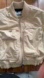Stylish beige cropped bomber jacket with front pockets. Perfect for a trendy look. Never worn
