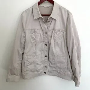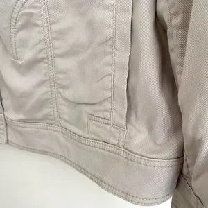 This stunning designer beige/grey jean bomber jacket is in excellent condition. NO rips, tears or stains. This jacket almost looks brand new!