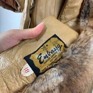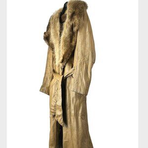 Beige Leather Trench Coat with Real Fur Collar and Belt