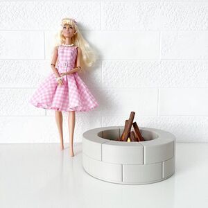 Enhance your doll's outdoor space with our charming 3D printed round firepit, designed to add warmth and ambiance to any miniature setting. Perfectly scaled for Barbie, Integrity dolls or other 12" dolls, this firepit features a realistic concrete block design and includes flickering tealight logs for a lifelike flame effect.