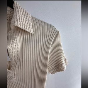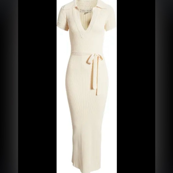 Moonrivrr beige ribbed polo dress with short sleeves. Features a classic collar. size medium, dress doesnt come with the belt, but weard beautifully without it !!