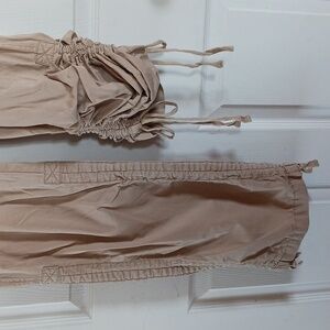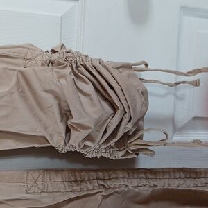 Beige Ruched Cargo Pants