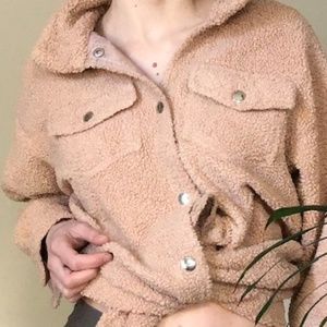 Great condition, very soft Tan Saint Genies Teddy Shacket, fits medium-large. Button front closure and silver button wrist snaps.