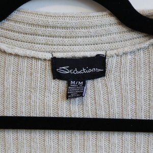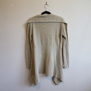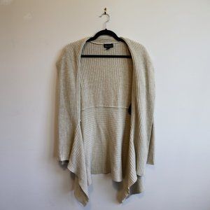 Beige Long Cardigan, longer in the front than the back, with an overhang