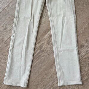 Beige, straight leg, slightly cropped pants
